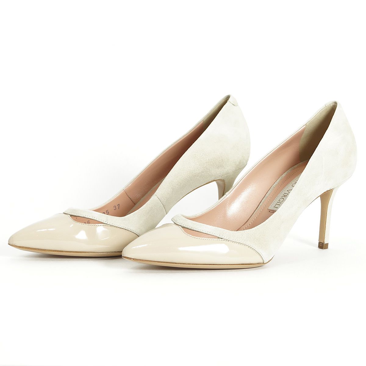 メーカー希望小売価格はメーカー商品タグに基づいて掲載しています高さ7.5cmの上品なヒールに上質なスエード素材とエナメル素材のコンビネーションが美しいヒールパンプス 大人の女性のための上質なシューズコレクションを生み出す「ヴィットリオヴィルジリ」。