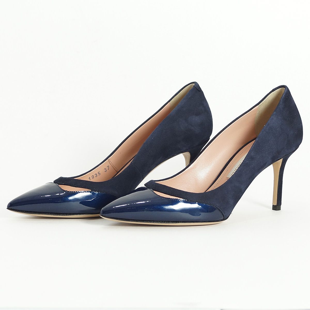 注目!このブランドのスタッフブログはこちら 高さ7.5cmのヒールに、非常に美しいシルエット、スエード素材とエナメル素材のミックスがポイント。