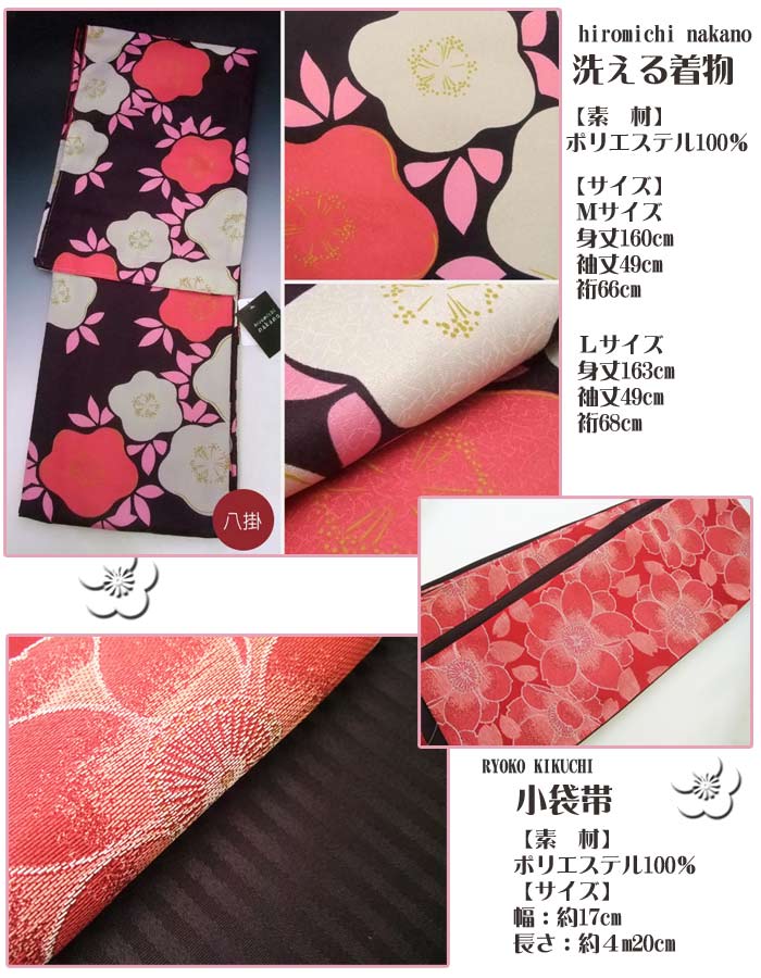 着物セット hiromichi nakano 迎春3点 セット 梅 M L ナカノヒロミチ ブランド 着物 ポンチョ RK 桜 小袋帯 きもの 帯 ポンチョコート ポップ カジュアル 袷 着物 細帯