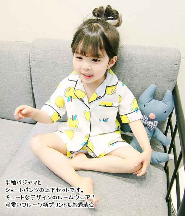 キュートなデザインのルームウエア!! 可愛いフルーツ柄プリントもお洒落で、お子様も喜んでくれること間違いなし♪